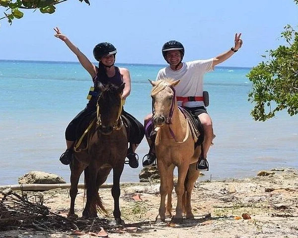 - Your Horseback Ride and Swim Adventure starts with pickup at your hotel lobby. Drive in comfort and style along a scenic route on the Jamaican countryside to our exciting Horseback ride experience. Your experienced guides, who will be with you every step of the way, will provide an introductory session to ensure your safety and full enjoyment of the tour. The 1-hour ride commences from the private and beautiful beach area and you are taken through the scenic countryside, passing tranquil farmlands of the locals living close by. The friendly and humorous guides give a narration of the scenery and area telling the story of Jamaica. The trail ride meanders back to the beach area where guests are given the opportunity to swim bareback and frolic with the horse in the magnificent Caribbean Sea. Your ride concludes with the amazing swimming experience where you will be given the opportunity to take your horse into the water for a quick swim.