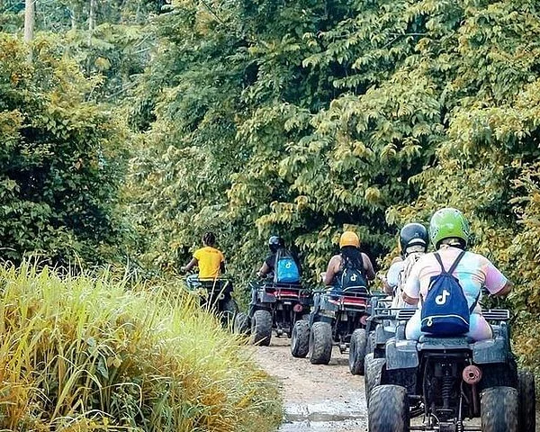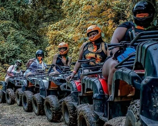 Arrive at the location and listen to a short orientation and safety briefing from your expert guide. Watch an ATV riding demonstration and get to know the basics of how to operate one, then you get fitted with your helmet and comfortably sit on your 4-wheeled, all terrain vehicle, set off into the lush landscape with your local guide. Ride through the beautiful mountains and enjoy the natural environment, ride through the small community/ farm village. Rev it up the nearby slopes to a Mountain View point, at 2,200 feet (670m) above sea level. Make sure to have your camera ready for spectacular photo opportunities Splash through puddles, roar up and down the bump along twisting dirt trails, it gets even better access the beautiful river for a refreshing swim and enjoy the swing at the top over looking the Caribbean Sea. Returning from your adventure you can make stops for lunch at any local restaurant along the way (At Own Expense) Include complementary beers sodas and bottled water